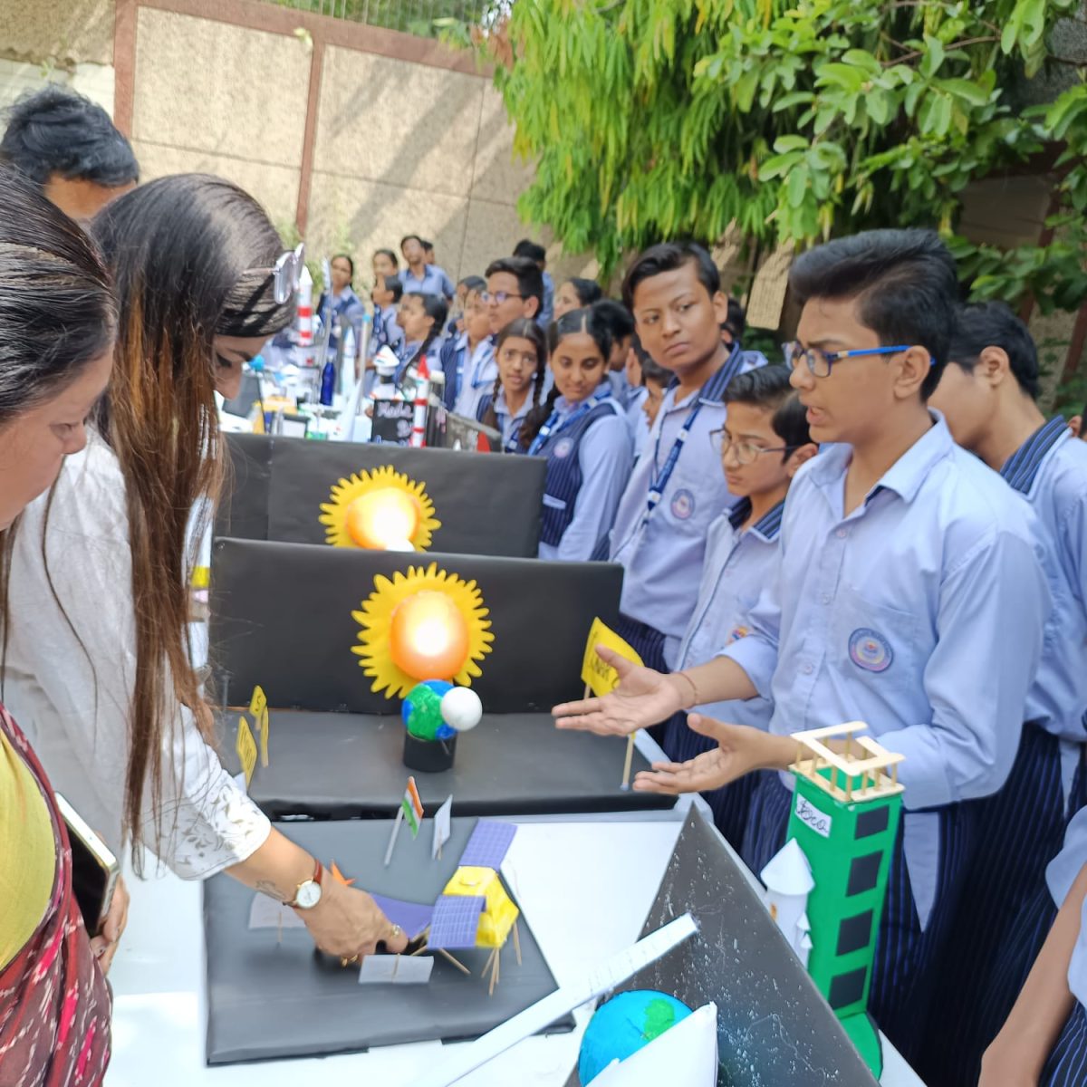 The exhibition was inaugurated by our respected Manager Mam, who appreciated the efforts of students and teachers for making the event a grand success. Parents, teachers, and visitors interacted with the participants and were impressed by their confidence and clarity while explaining scientific principles.