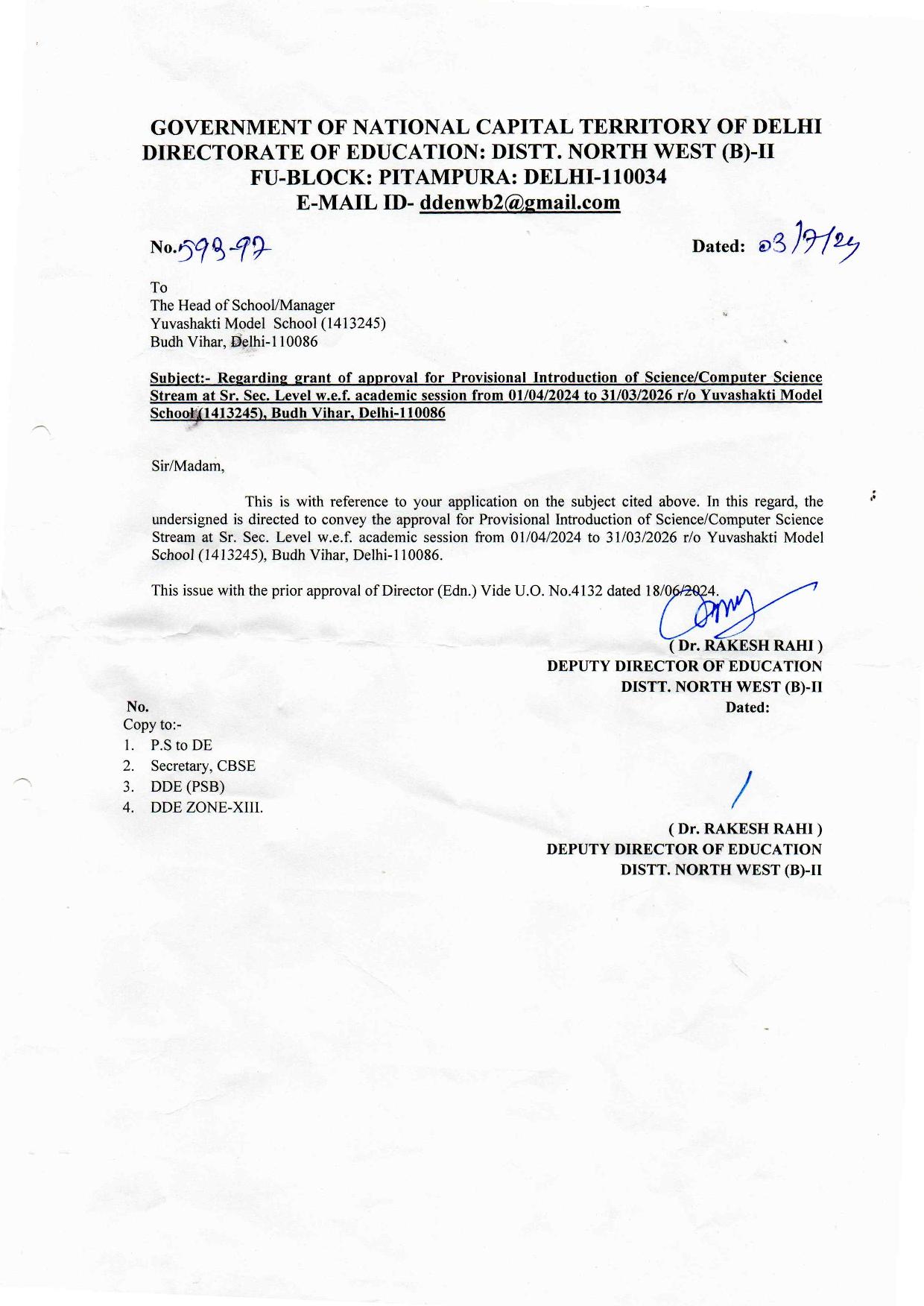 CBSE AFFILIATION LETTER